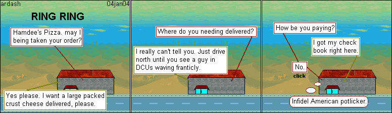 Hamdee Pizza, no pepperoni, no canadian bacon.